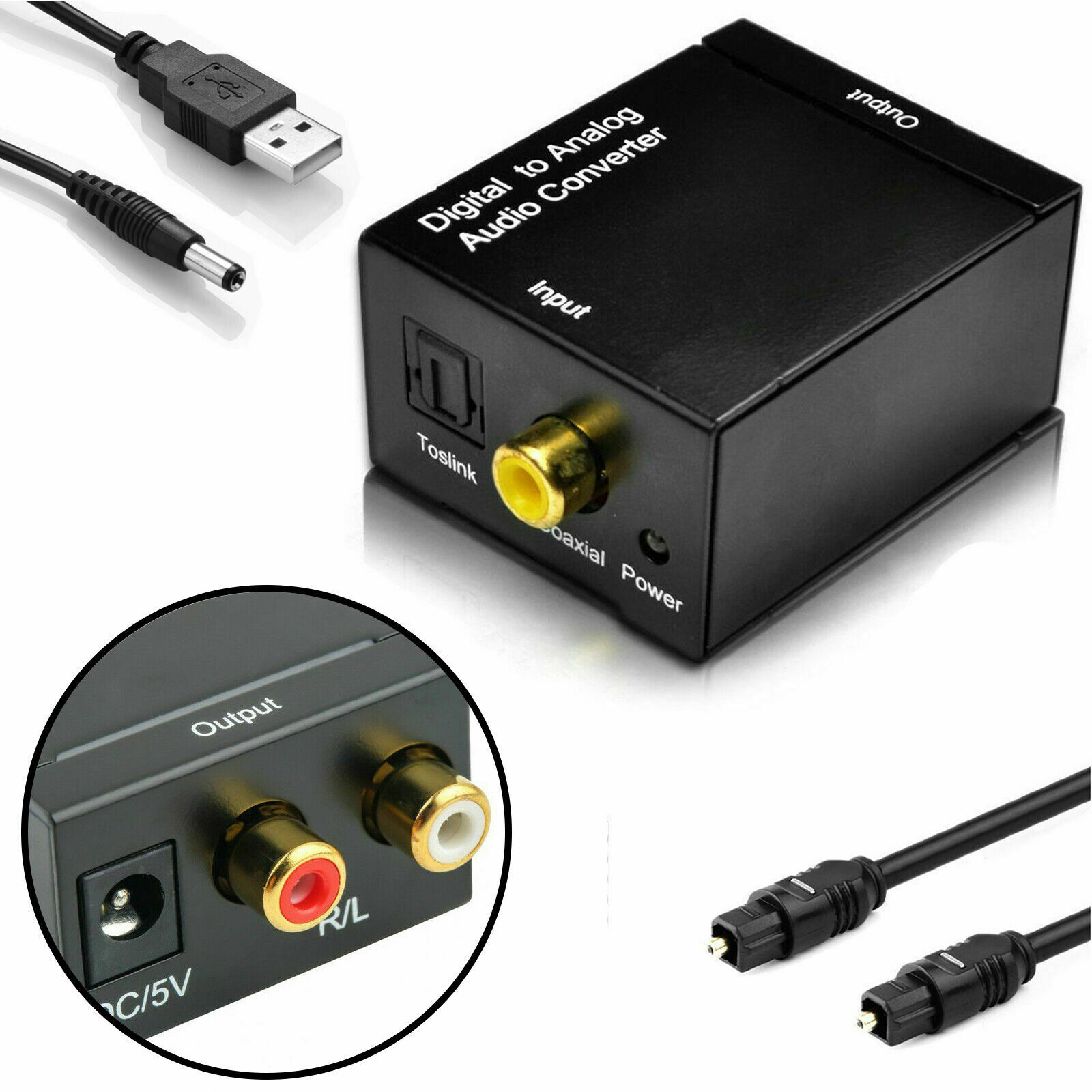 Digital Optical Coaxial Toslink Signal to Analog Audio Adapter Converter RCA USB