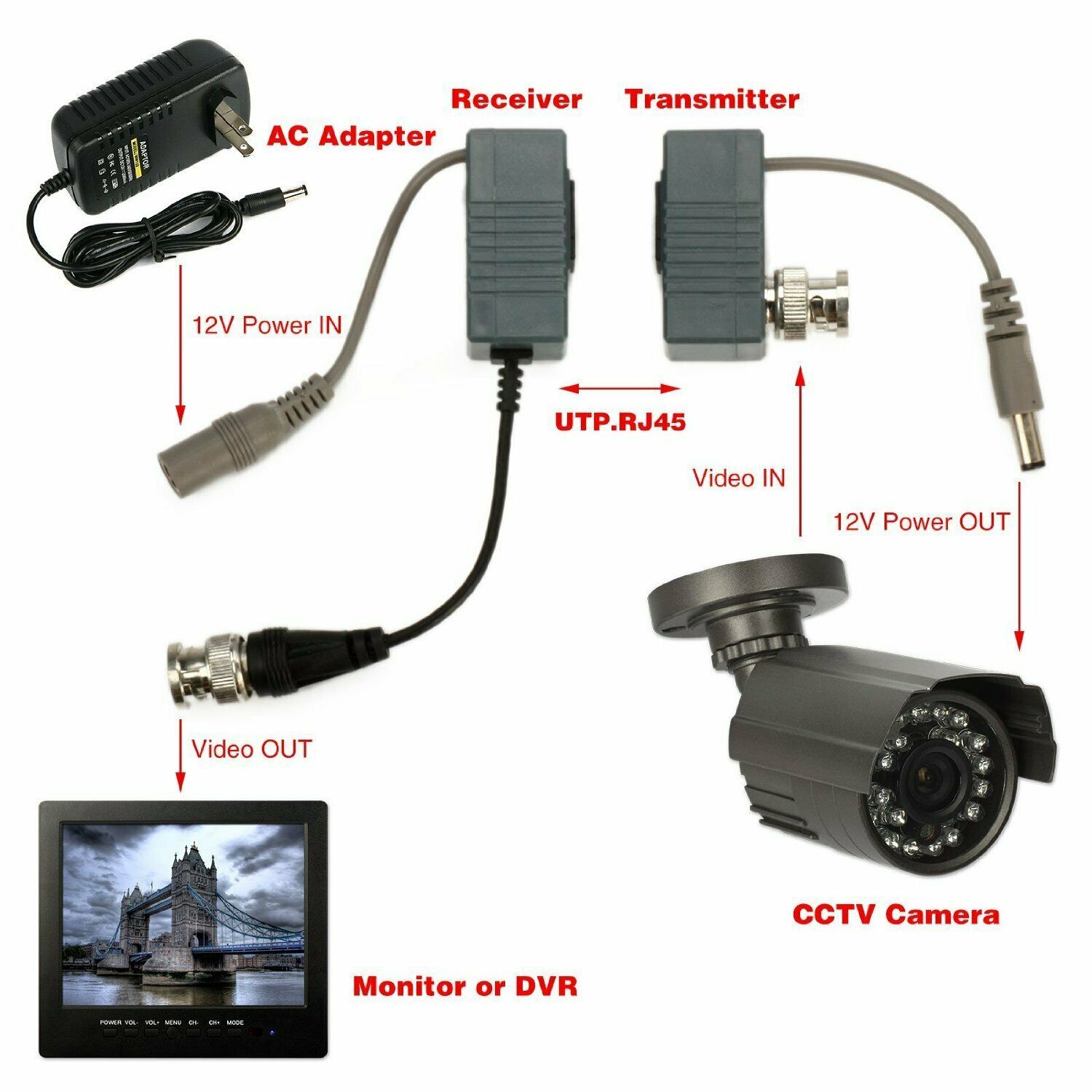 BNC to RJ45 CAT5 CAT6 Cable Passive Video +Audio Balun Connector Transceiver for CCTV Camera